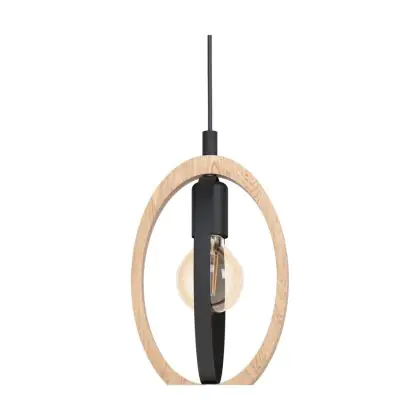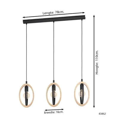 Eglo Pendelleuchte Basildon Stahl Holz Schwarz Braun | IP20 - Geeignet für 3x E27