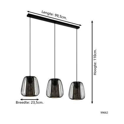 Eglo Pendelleuchte Curasao Stahl Schwarz | IP20 - Geeignet für 3x E27