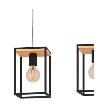 Eglo Pendelleuchte Libertad Stahl Holz Schwarz Braun | IP20 - Geeignet für 3x E27