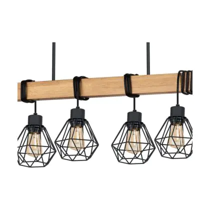 Eglo Pendelleuchte Townshend 5 Stahl Holz Schwarz | IP20 - Geeignet für 9x E27