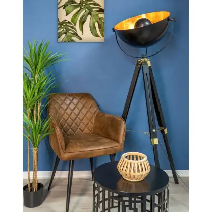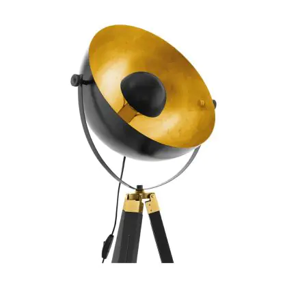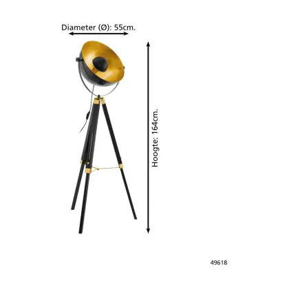 Eglo Stehlampe Covaleda Holz Stahl Schwarz Gold | IP20 - Geeignet für 1x E27