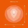 Der Abstrahlwinkel bezeichnet den Winkel, in dem das Licht aus der Lichtquelle ausgestrahlt wird. Er wird in Grad (D) angegeben. Je geringer die Gradzahl des Abstrahlwinkels ist, desto kleiner ist auch der Durchmesser des Lichtkegels, den die Lichtquelle produziert. Beispiel: Wird eine Lampe mit einem Abstrahlwinkel von 60 Grad an der Decke (2,5 m Höhe) angebracht, erzeugt sie einen Lichtkegel von 2,9 Metern Durchmesser. Hat die Lampe hingegen einen Abstrahlwinkel von 120 Grad, beträgt der Lichtkegel 8,7 Meter im Durchmesser. |
