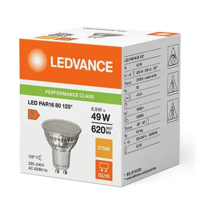 Mehrfachpackung 10x Ledvance Performance Led-Spot Reflektor GU10 PAR16 6.9W 620lm 120D - 827 Extra Warmweiß | Ersatz Für 80W