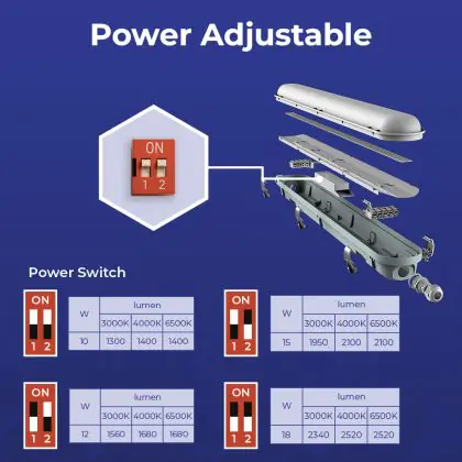 Lichtfarbe (Kelvin) | 3000 Warmweiß, 4000 Kaltweiß, 6500 Tageslichtweiß |