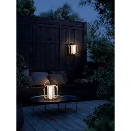 Diese Solarlampe wurde von dem dänischen Duo Says Who entworfen. Sie haben gebogenes Bambusholz für ein weiches und natürliches Aussehen verwendet, das sich perfekt für Gärten und Terrassen eignet. Diese sehr funktionelle Leuchte lädt sich in der Sonne selbst auf. Die Lampe strahlt ein warmes 2700K-Licht aus, das mit einer Leuchtkraft von 300lm eine gemütliche Atmosphäre schafft.