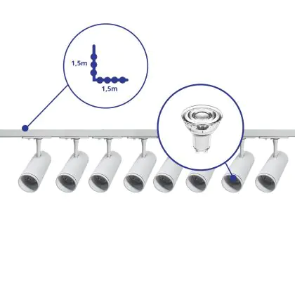 Description Bright Choice Ensemble complet Rail Monophasé Rail L 1,5 x 1,5 Mètre Blanc | incl. 8x Spot + GU10 2700K 3W Dimmable + Embout, Connecteur d’Alimentation et L -Connecteur