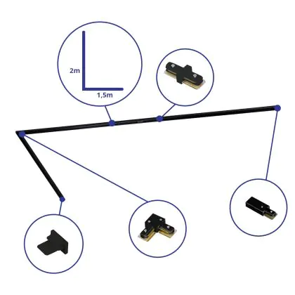 Bright Choice Rail Set Rail Monophasé L 1,5 x 2 Mètre Noir | incl. Embout, Connecteur d’Alimentation et L -Connecteur