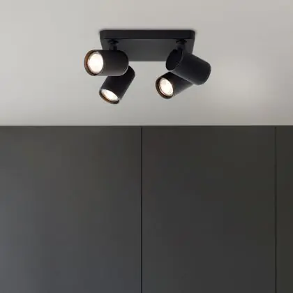 Brilliant Marty Plafonnier Aluminium Sablonneux Noir 20W 1400lm - 830 Blanc Chaud | Incl. 4x GU10
