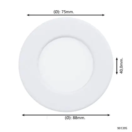 Eglo Encastré Spot Fueva 6 Plastique Blanc 3.7W 450lm - 827-840-865 CCT est un spot LED encastrable. Ce luminaire est conçu pour un éclairage d’accentuation pour un usage domestique ou bien professionnel. LED Intégré, ce spot LED Eglo en Plastic a besoin d’une place nécessaire de mm de largeur et mm de profondeur. Ce luminaire est compatible avec une ampoule GU10, il est important de faire attention si vous décidez de changer d’ampoule.