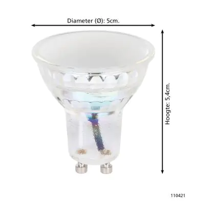 Cette ampoule Eglo Spot LED GU10 PAR16 4.9W 345lm - 827-865 Accordable Blanc + RGB | Zigbee Dimmable - Remplacement 25W est le produit de remplacement idéal pour votre ancienne ampoule avec un culot GU10. Grâce à la technologie LED intégrée, vous pourrez faire des économies d’énergie substantielles. Ce spot Eglo Spot LED GU10 PAR16 4.9W 345lm - 827-865 Accordable Blanc + RGB | Zigbee Dimmable - Remplacement 25W avec son efficacité lumineuse de lumen par watt, vous permettra de profiter d’un éclairage de qualité en toute circonstance.