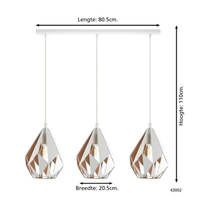 Eglo Suspension Luminaire Carlton 1 Échantillon Blanc Dorée | IP20 - Convient pour 3x E27