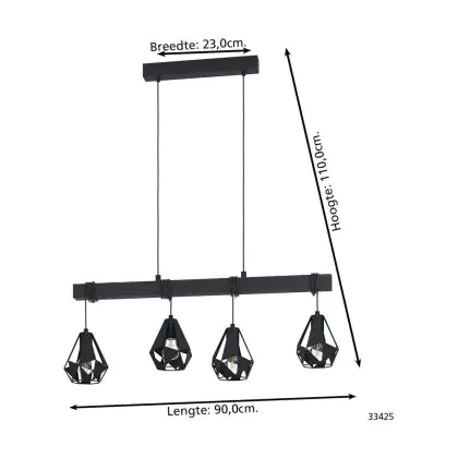 Eglo Suspension Luminaire Townshend 7 Échantillon Bois Noir | IP20 - Convient pour 4x E27