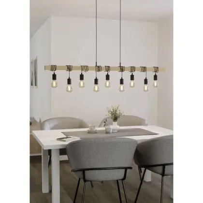 Eglo Suspension Luminaire Townshend Bois Échantillon Brun Noir | IP20 - Convient pour 9x E27