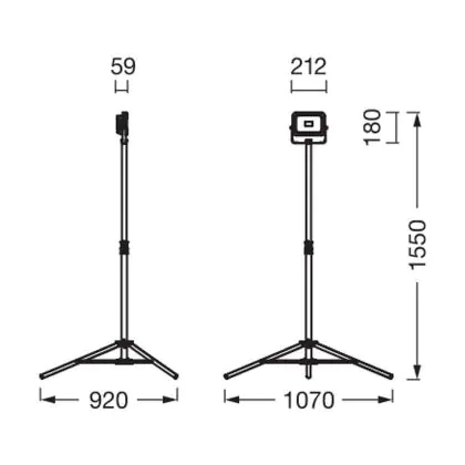 Description Ledvance Projecteur LED Projecteurs De Chantier Value Trépied Noir 20W 2000lm - 865 Lumière Du Jour | IP54 - Batterie - Symétrique