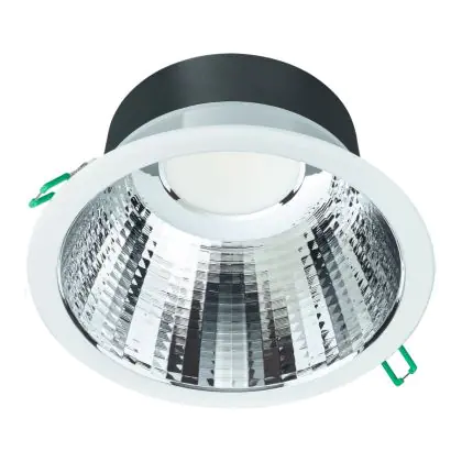 Les spots LED encastrables (aussi appelés Downlights) sont des solution éco-énergétiques permettant de remplacer les spots classiques équipés de technologie à fluorescence. Ce downlight Philips Spot encastrable LED Coreline DN142B Aluminium Blanc 19.2W 2300lm 60D - 830 | Diamètre 200mm - IP54 - UGR est conçu pour remplacer un spot classique de 2x18. La consommation de ce downlight LED est considérablement plus faible qu’un luminaire classique, à savoir, seulement 19.2 watts. Une économie d’énergie sans compromettre la qualité de la lumière. Le flux lumineux est de 2300 lumens. La lumière de ce downlight LED est diffusé à 60 degrés et offre un bon rendu des couleurs. La durée de vie moyenne de ce luminaire LED est de 50000 heures.